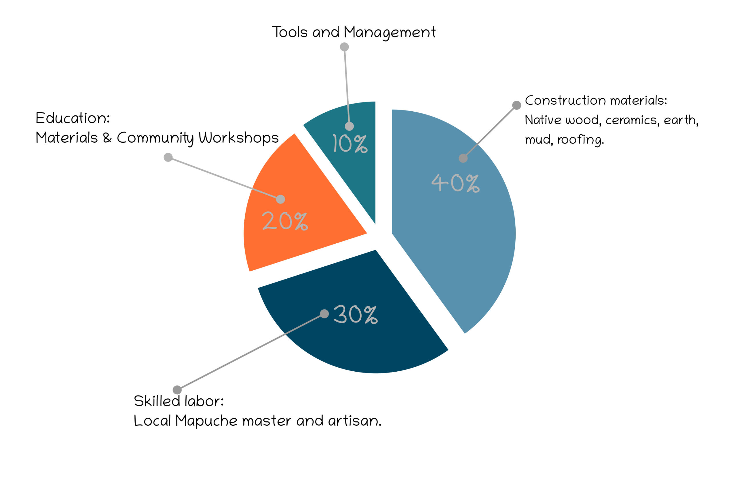 Radicata nei principi di "Ñuke Mapu" (Madre Terra), l'istruzione a Koyam è strettamente legata alla lingua indigena Mapudungün, garantendo che la conservazione culturale vada di pari passo con l'azione ecologica.Questo progetto di costruzione di una toilette a compostaggio è una naturale estensione del loro lavoro: chiudere il ciclo dei rifiuti e creare una nuova risorsa per la loro terra e i loro giardini.