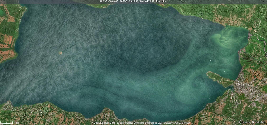 Satellite image of a cyanobacteria bloom in the Villarica Lake, 2024